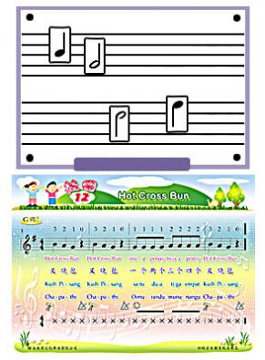 备有:磁性白板、挂图、激光唱盘、磁粒、磁性图 文卡和使用手册。 # 配合音乐教育的课程说明编写。 # 借着多样化和有趣的活动,让学生认识和掌 握基本乐理。 # 认识各种乐器,利用乐器为歌曲伴奏。 # 包括多种语言的歌曲。